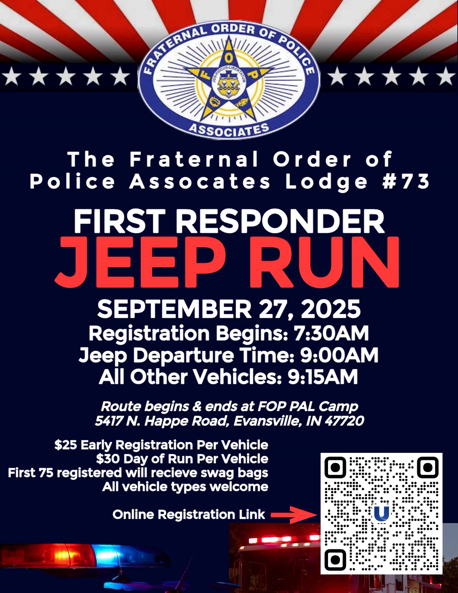 We’re excited to announce that online registration is now open for our upcoming First Responder Jeep Run hosted by the Fraternal Order of Police Associates Lodge #73!